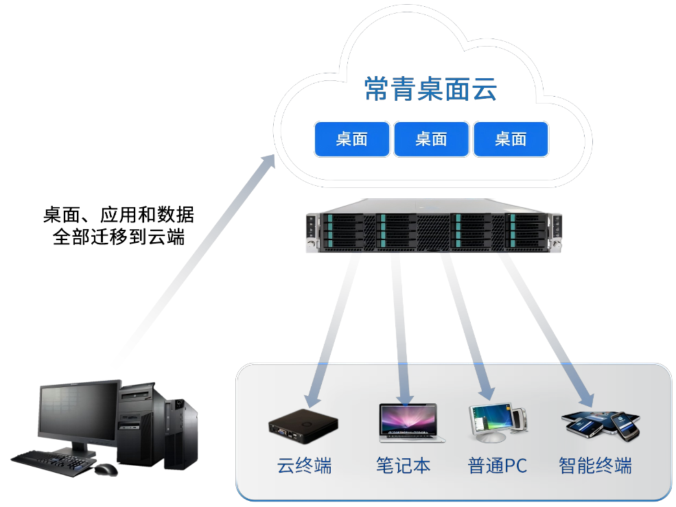 常青桌面云兼容ARM/X86 架构,适配国产 CPU、GPU与操作系统,满足国产化改造需求,适用于智慧办公、培训室、图形设计与处理等场景,有效解决传统终端数据分散、外设管理粗放等问题,助力智慧企业数字化转型。