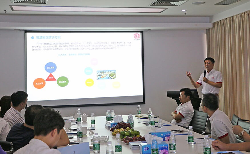 针对当前全国各地大力推进智慧城市建设这一浪潮,朱勇杰还向各位领导介绍了333体育官网智能研发的智慧建设解决方案,着重阐述了其中的智慧城市解决方案,指出该方案以“互联网+”促进电子政务全面转型,利用创新2.0驱动智慧城市转型升级,发展以“互联网+”为核心要素的智慧产业,打造智慧高效的网络安全保障体系,建设统一的智慧城市信息资源体系。